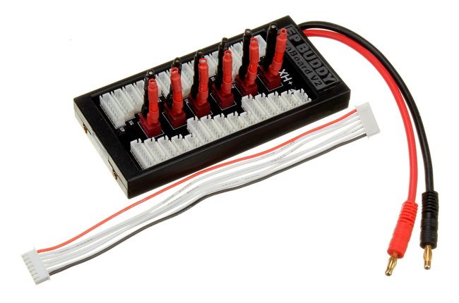 Use ParaBoard V2 to charge up to 6 batteries in parallel. This ParaBoard can be used for batteries with JST-XH type balance plug (the most popular type in the market). You can solder your own connectors on the bare end.