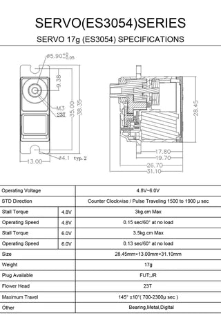 | Operating Speed | 4.8V | 0.15 sec/60° at no load |