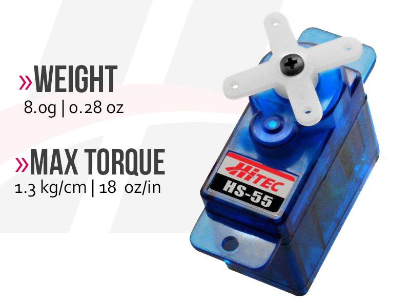 Product Description: The HS-55 micro servo is the perfect choice for controlling smaller electric and park flyers. It features precision components that have been engineered to provide long-lasting, trouble-free service. The HS-55 has set the standard for affordable performance, and it has been featured in hundreds of model aircraft reviews worldwide.